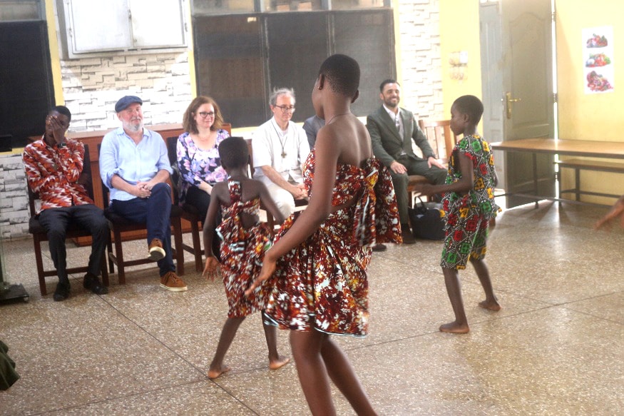 Powitaliśmy Panią Laurę muzyką i tańcem – gestem głęboko zakorzenionym w ghańskiej kulturze, będącym wyrazem szacunku i gościnności. W rytmie bębnów przeszliśmy do przestrzeni wydarzenia, gdzie nasza niezastąpiona Julia poprowadziła część artystyczną uroczystości. Kulminacyjnym momentem było wspólne odsłuchanie hymnu Włoch, którego dźwięki rozbrzmiewały w całym Child Protection Center. Nasi uczniowie z pełną powagą oddali hołd włoskiej historii i tradycji.