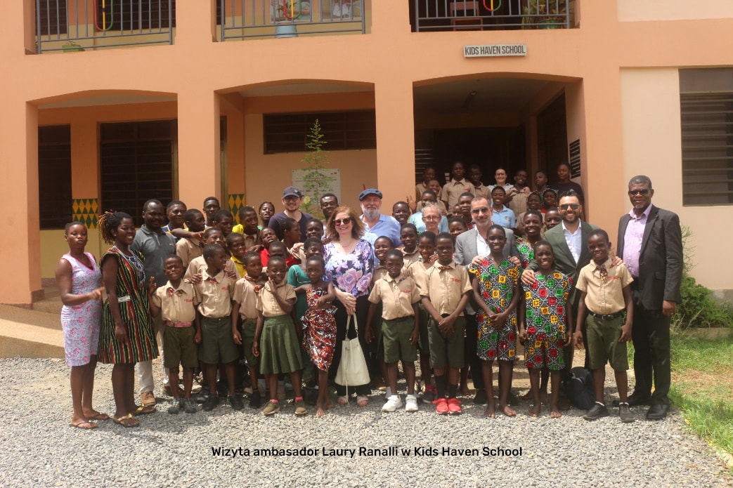 Miniona środa była wyjątkowym dniem dla podopiecznych Kids Haven School. Tego dnia odwiedziła nas Pani Ambasador Laura Ranalli, kierująca włoską placówką dyplomatyczną w Akrze. Już od rana wśród dzieci panowało radosne poruszenie związane z wizytą tak inspirującego gościa. Po zakończeniu porannych zajęć wszyscy byli gotowi, aby z otwartymi ramionami przyjąć naszych gości. Najważniejsze było dla nas stworzenie serdecznej atmosfery i zadbanie o to, by Pani Ambasador poczuła się u nas jak w domu.